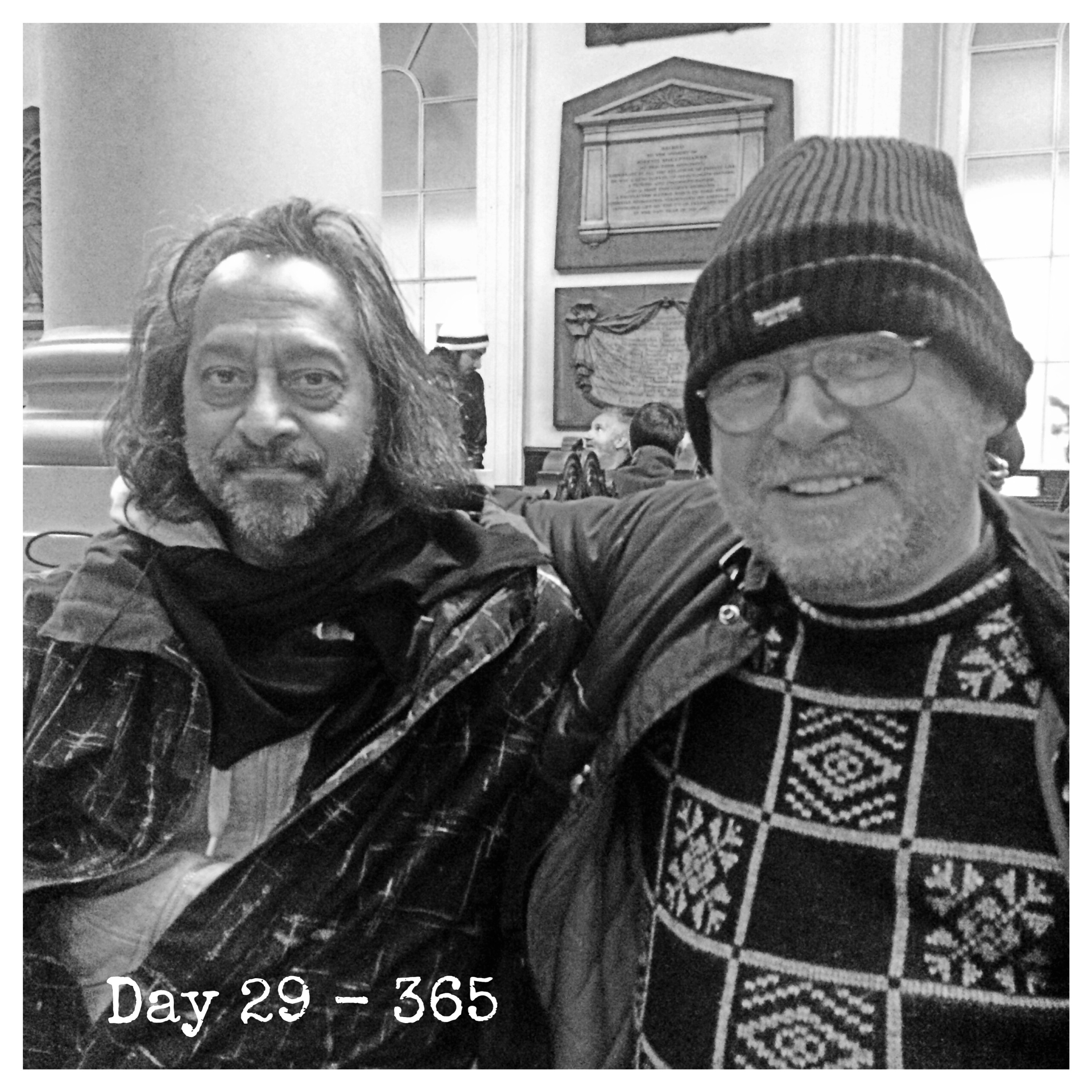 The two chaps in today’s picture, Manuel and Nick, are two of the most polite and engaging men I’ve met in a long time. Sure, they are both vulnerable and both obviously have reasons and histories that mean they attend “soup kitchens” such as this. We chatted for just a short while, ten, maybe fifteen minutes only. Manuel was keen for me to fill his little container with stew for him to share later with some of his friends who couldn’t attend. But, to only fill it after I had gone around the room and ensured everyone who wanted stew had got their fill.