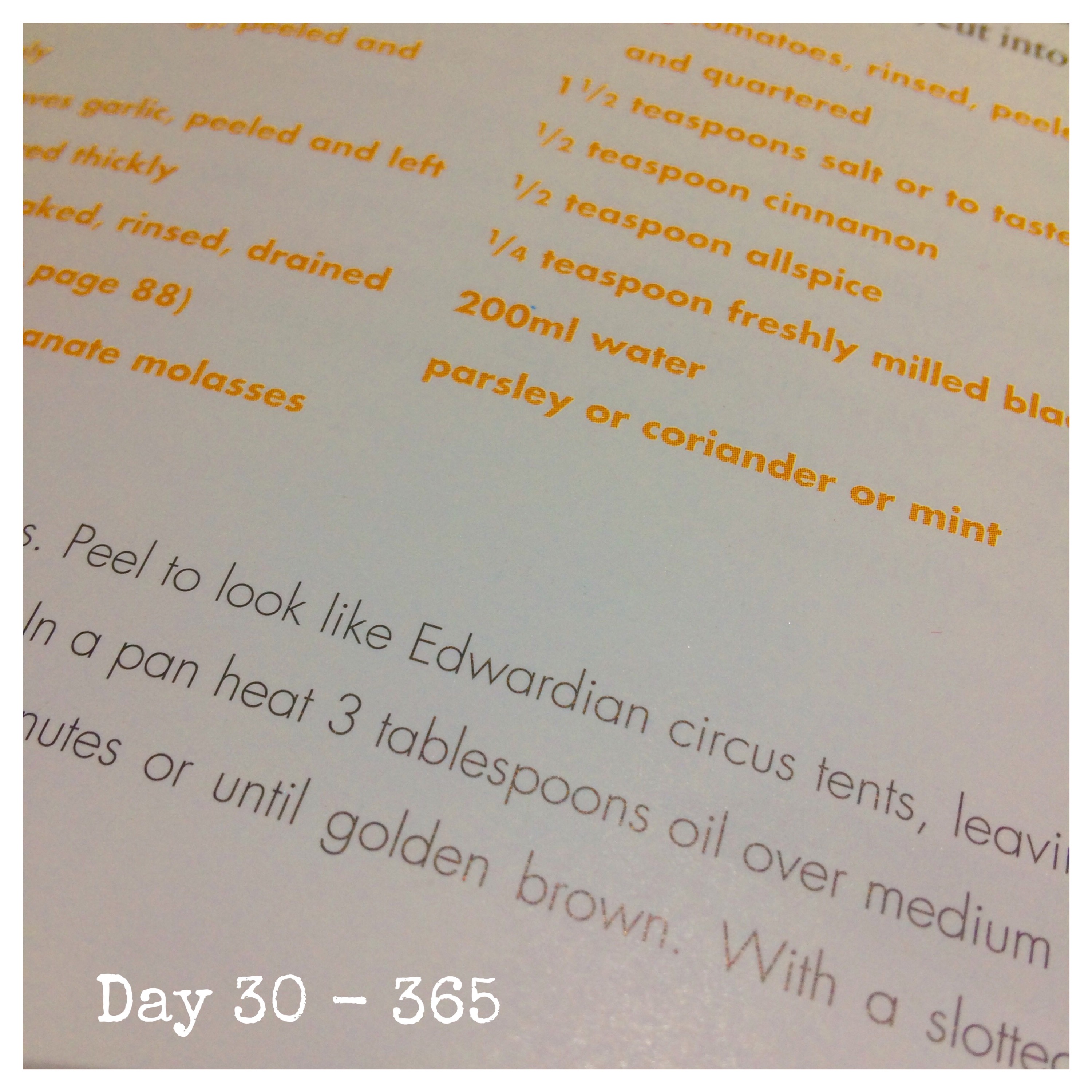 However…..I am a little befuddled by her recipe for aubergines in a moussaka; “Peel to look like Edwardian circus tents” has me fazed!