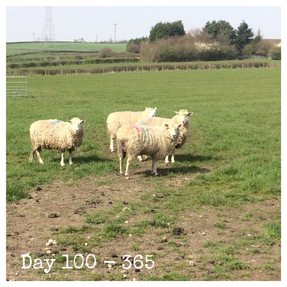 I wanted the image for Day 100 to be extra special. And, in my defence, I thought I had it as the sheep on the far right of the group had a fabulous green “mohawk” hair do which looked great. The fleeces were also showing multiple colours of markings.