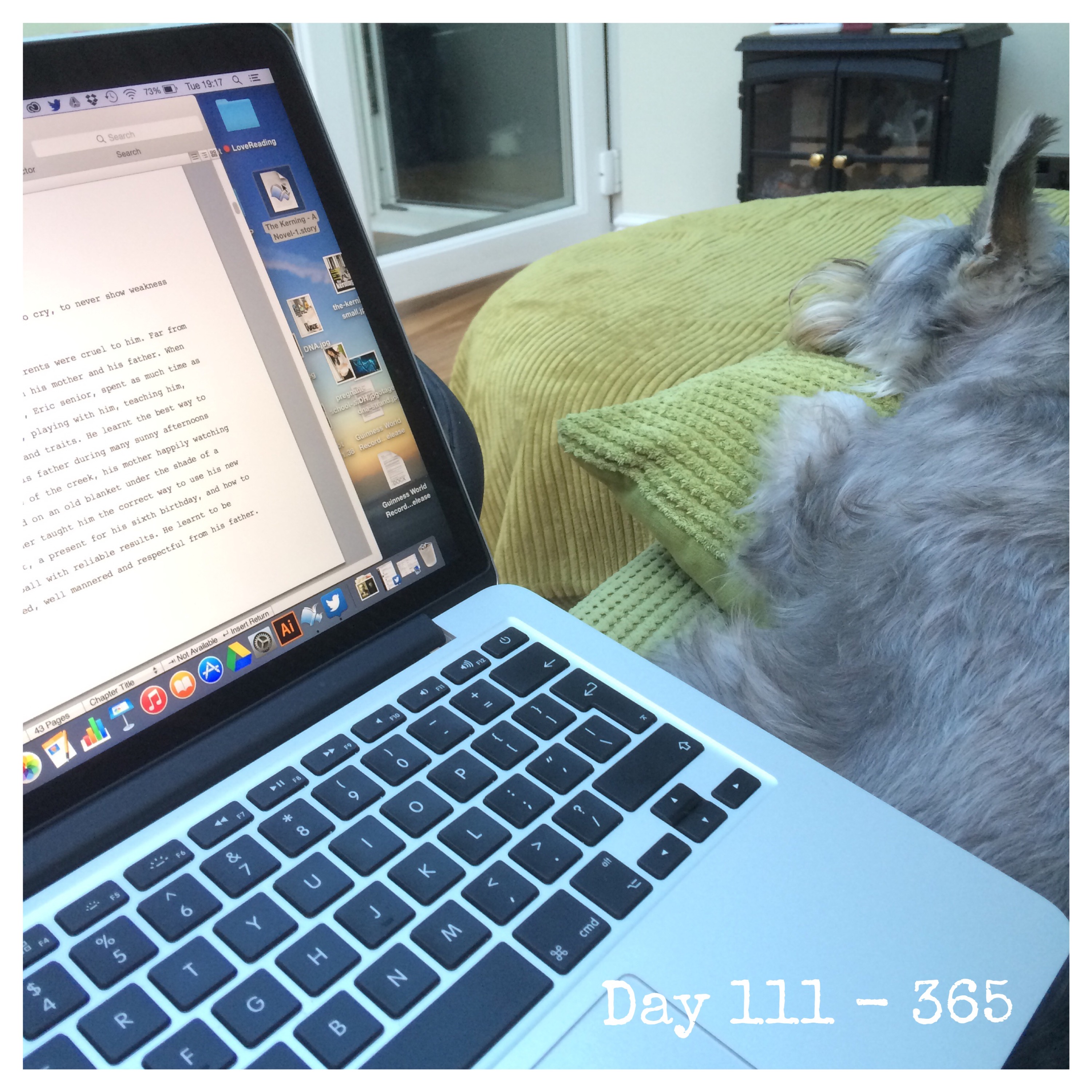 Sometimes it isn’t very convenient to have her tucked right up close to you. Especially when you want to concentrate on writing your debut novel. But, it’s lovely having her beside you.