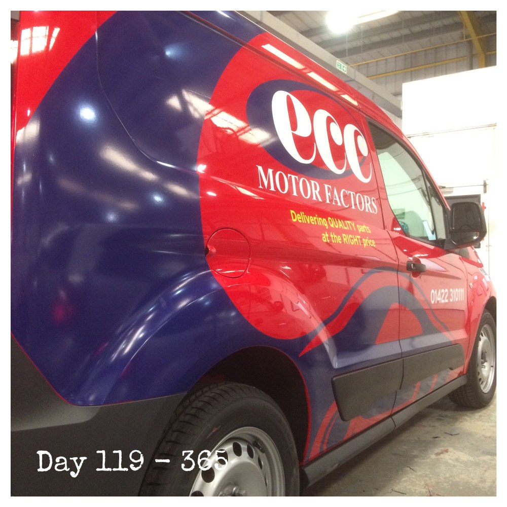 Today I was applying graphics to a clients brand new Ford Transit Connect. The dark blue car shape was a challenge to apply. At just over 1500mm tall and 2700mm wide it proved a little tricky to get the vinyl onto the bodywork without any mishaps. But, the job was completed and the client was delighted with it.