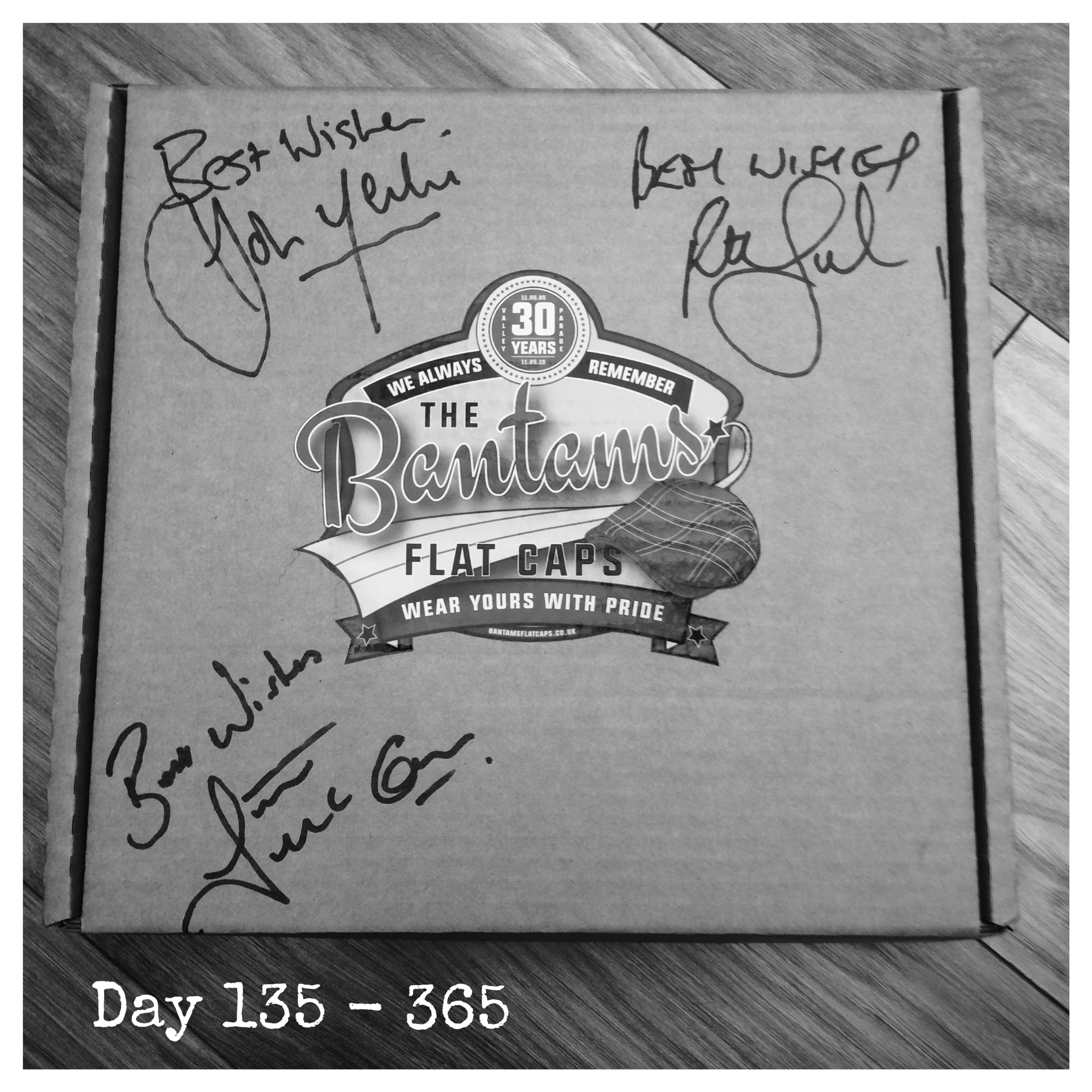 We are now down to the very final caps having sold in excess of 630 of them. This cap and box has been specially signed by three of the Bradford City players involved in the match against Lincoln City on 11th May 1985. Both Jeremy and I would like to extend our sincere thanks to John Hendrie (top left), the captain Peter Jackson (top right) and Stuart McCall (bottom left) for taking the time to autograph this item.
