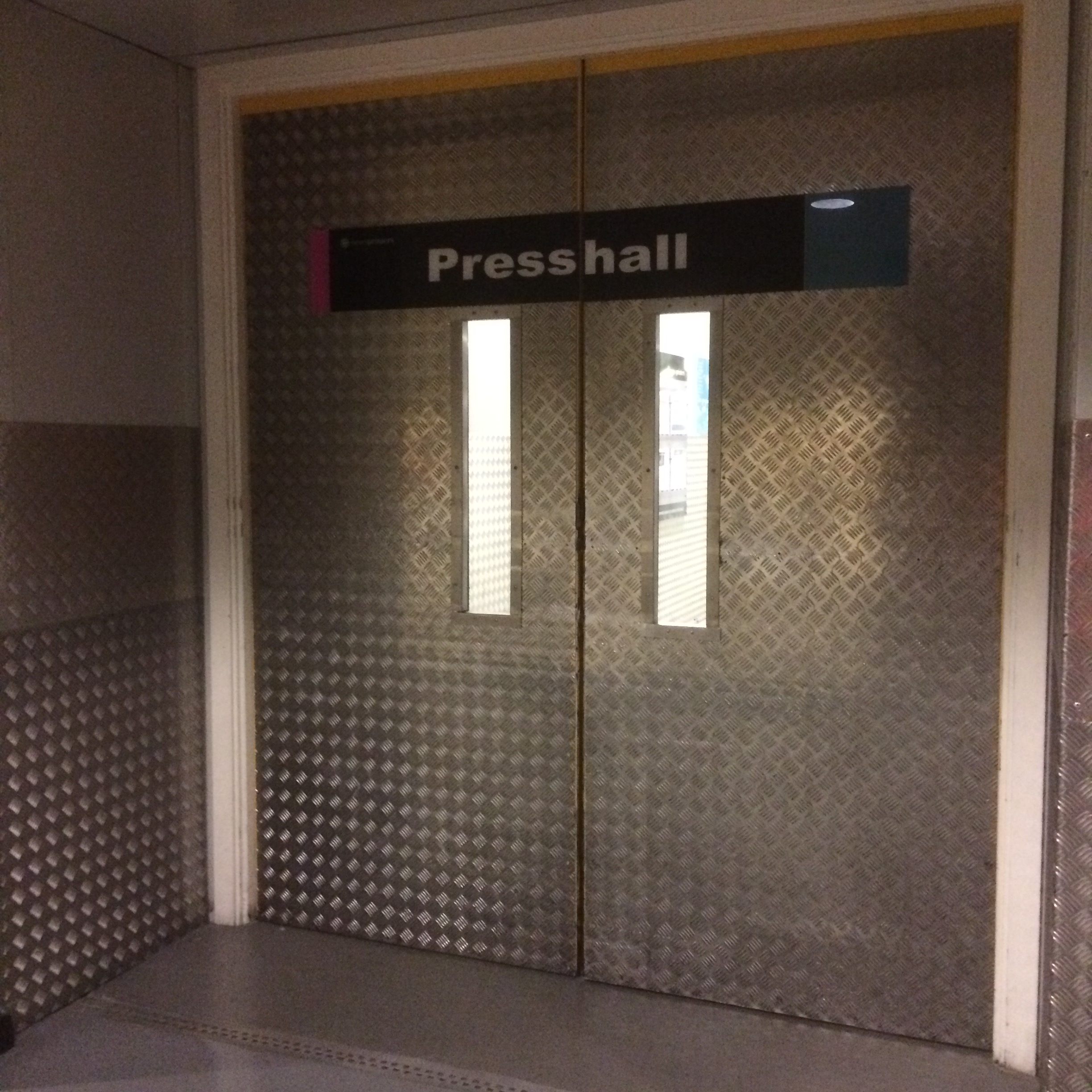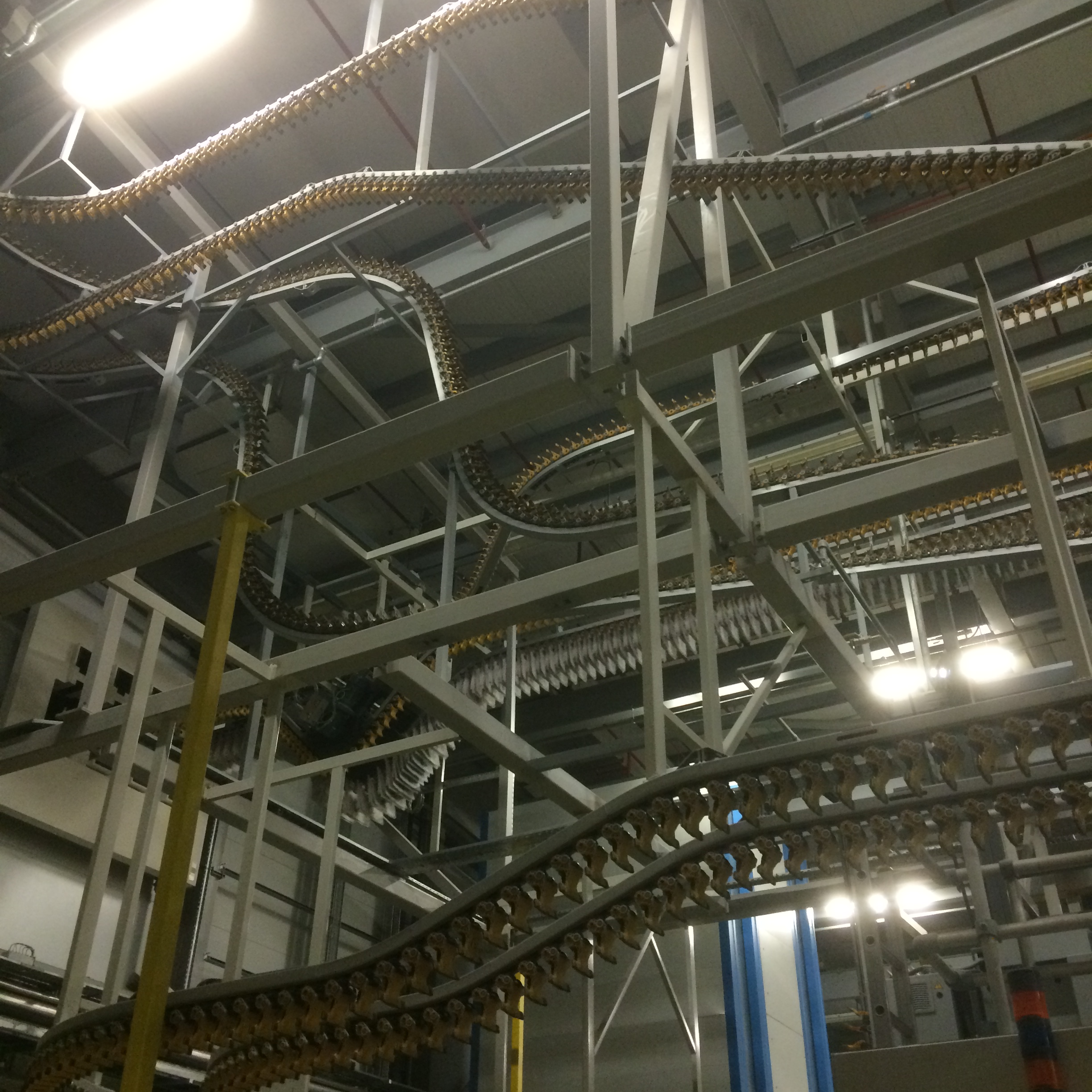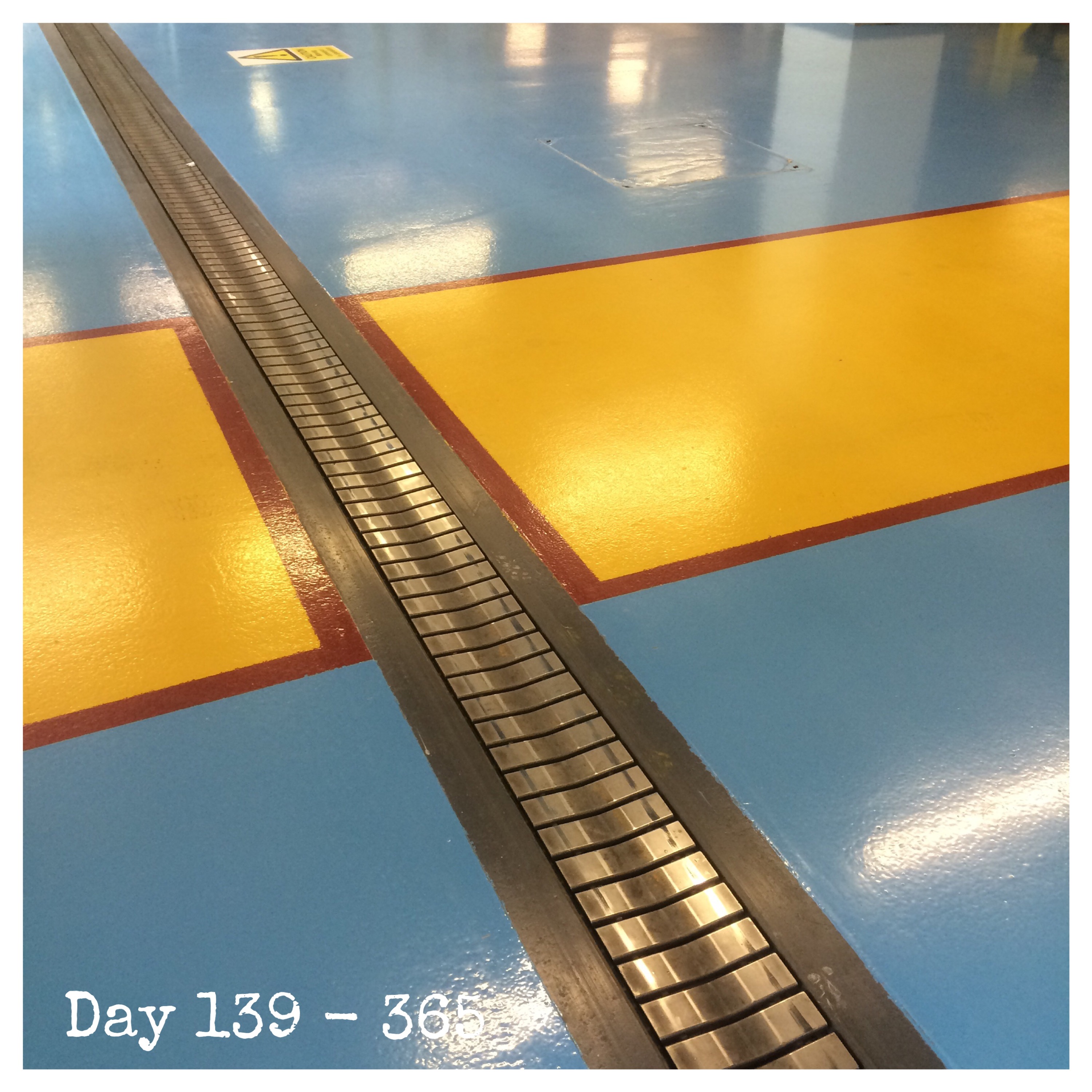 Today’s picture is of the track by which huge rolls of blank newspaper – 2211mm tall by over 1200mm wide and weighing 2 tons – are moved from the storage area into the printing presses before becoming your morning newspaper. Each roll of paper is from recycled paper and costs £1,000.