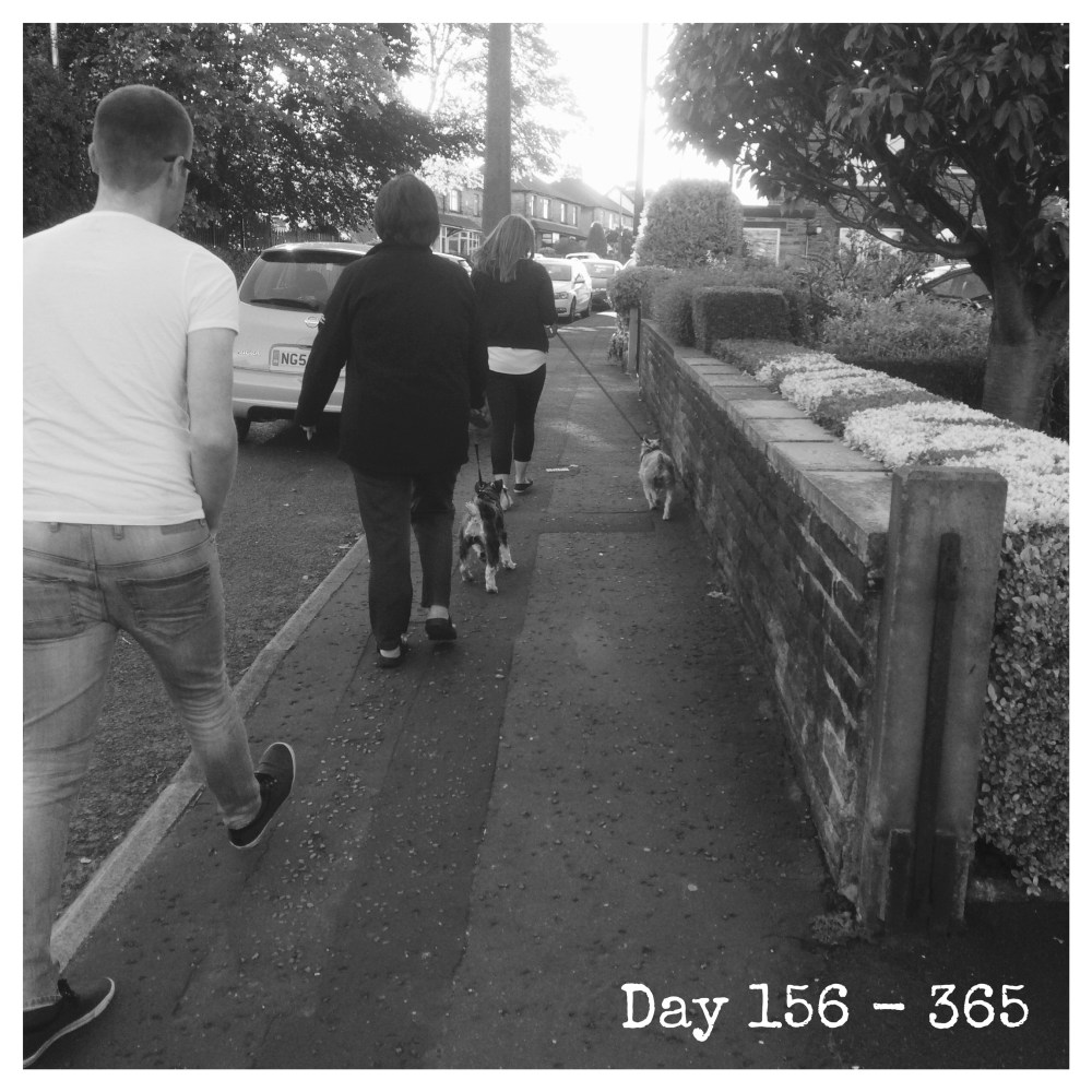 Here we are; Bethany leading the way with Maggie The Mini Schnauzer, closely followed by Elphie The Mini Schnauzer pulling Sarah along as she attempts to get to the front. Liam is next and, behind the iPhone, is myself.