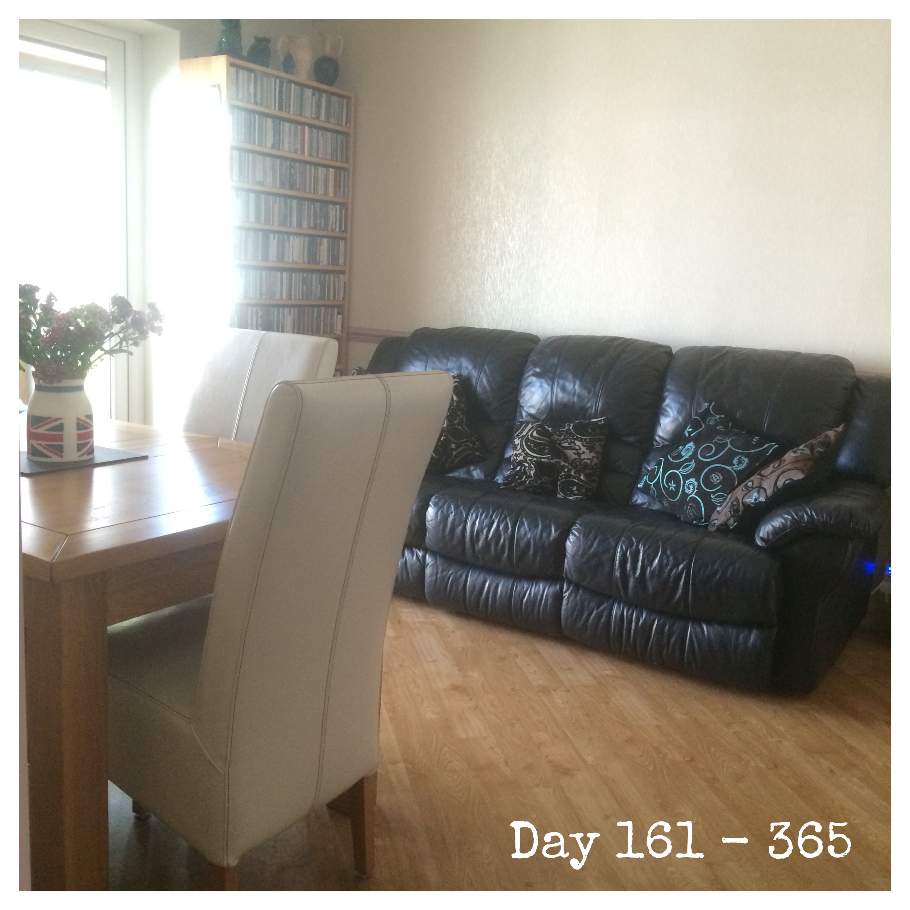 Our dining room fresh from redecorating. The black leather sofa will soon be joining Liam and Bethany in their new apartment.