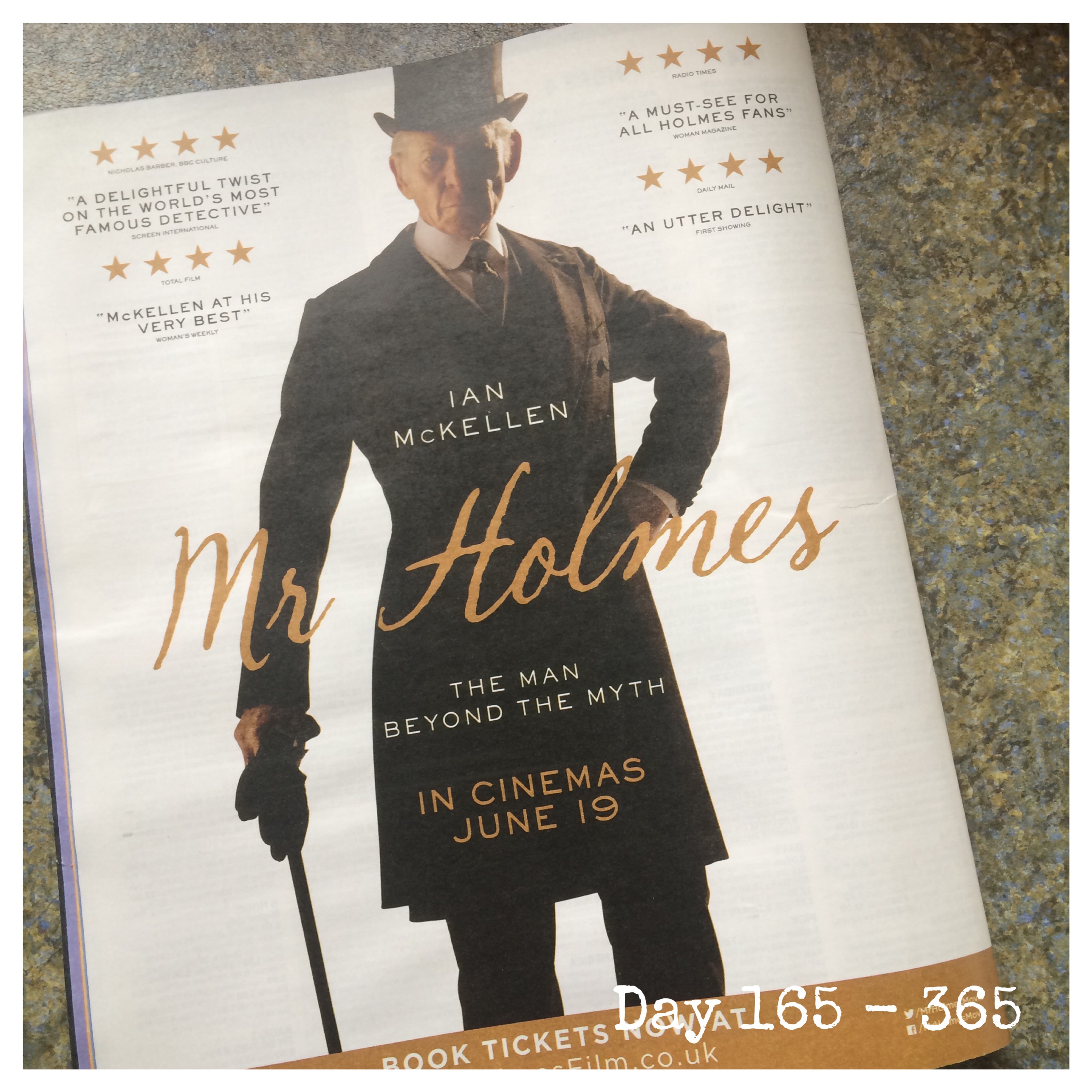 I always look forward to seeing a new film about Holmes and this one, starring Sir Ian McKellen, we were lucky to see ahead of it’s cinema release. It is a very good film although, for me, was a little saddening to see Holmes in his later years struggling with failing memory and faculties. It comes to us all, I suppose, but to see our heroes, even fictional ones, deprived of what makes them heroes to us, is sad.