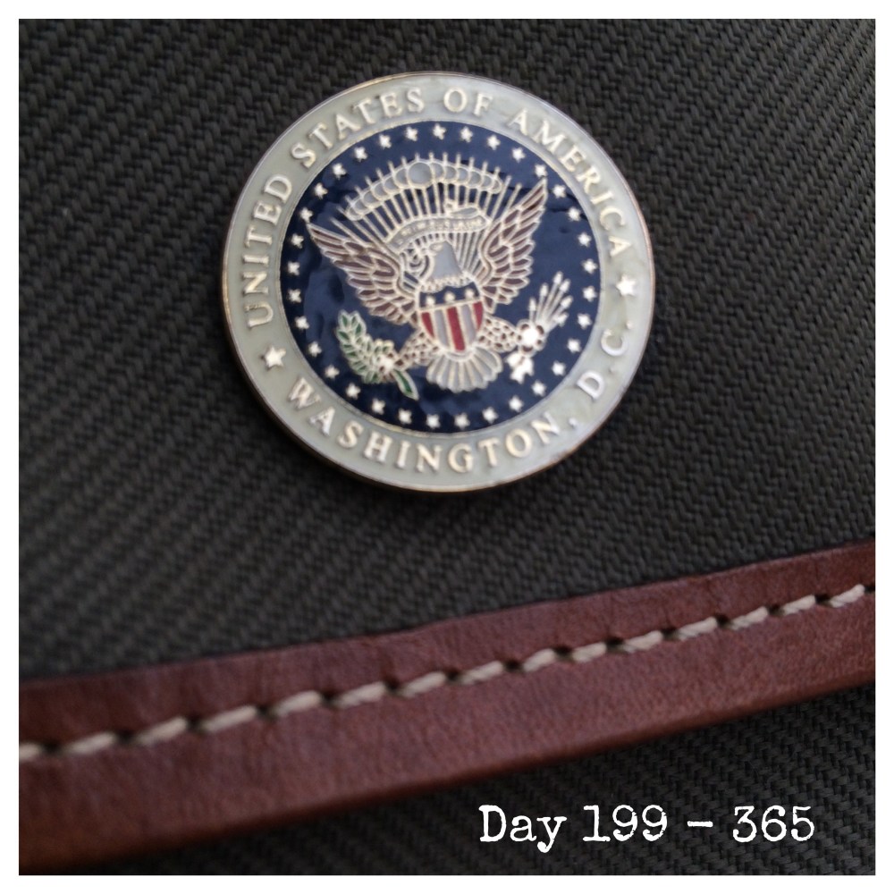 A close up of my Washington DC badge, bought during my previous US trip to Washington, after I secured it to my trusty Billingham camera bag.