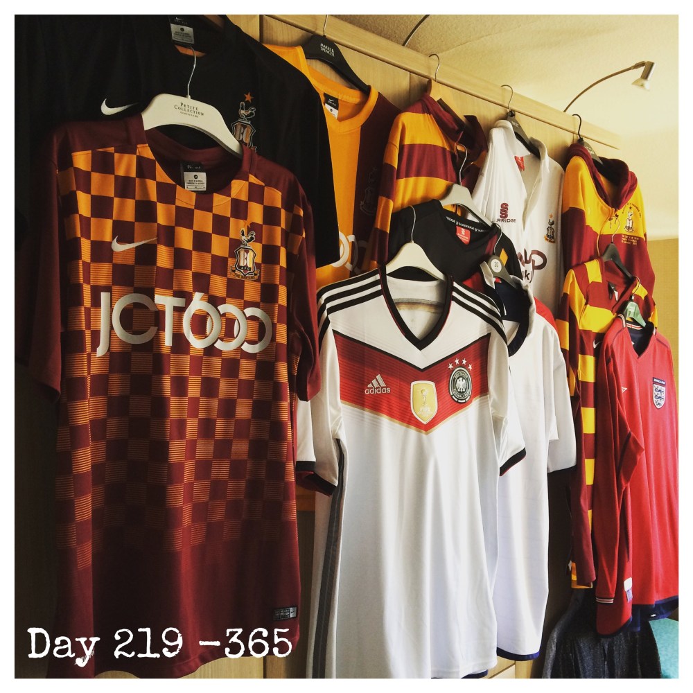 In preparation for her moving out, I have taken all my football shirts from my crowded wardrobe in readiness for moving them into her, soon to be vacated, wardrobe.