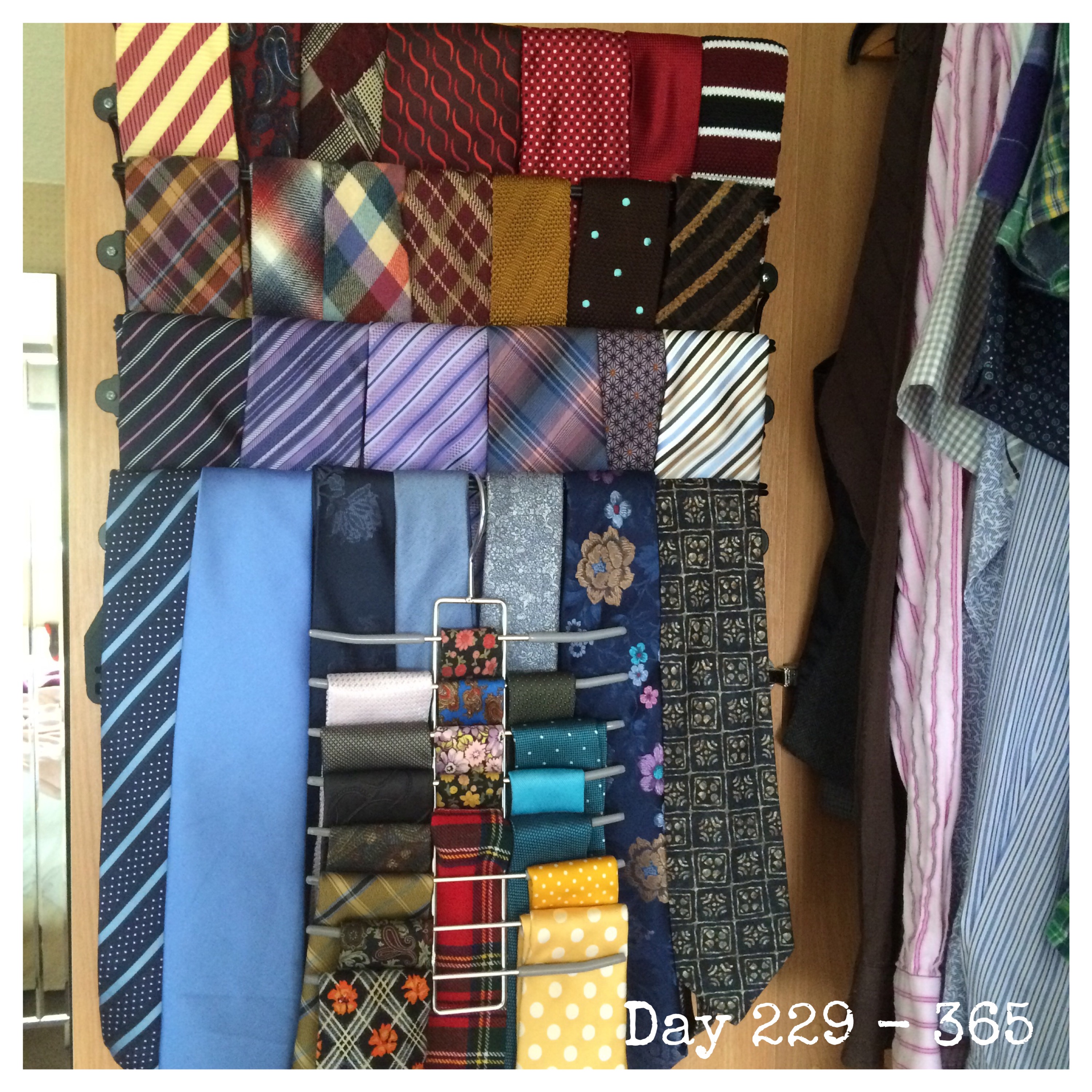 That is how many ties I own. In an effort to keep them tidy and to be able to see what I have when choosing a tie to wear, I have put four hanging racks onto my wardrobe door.