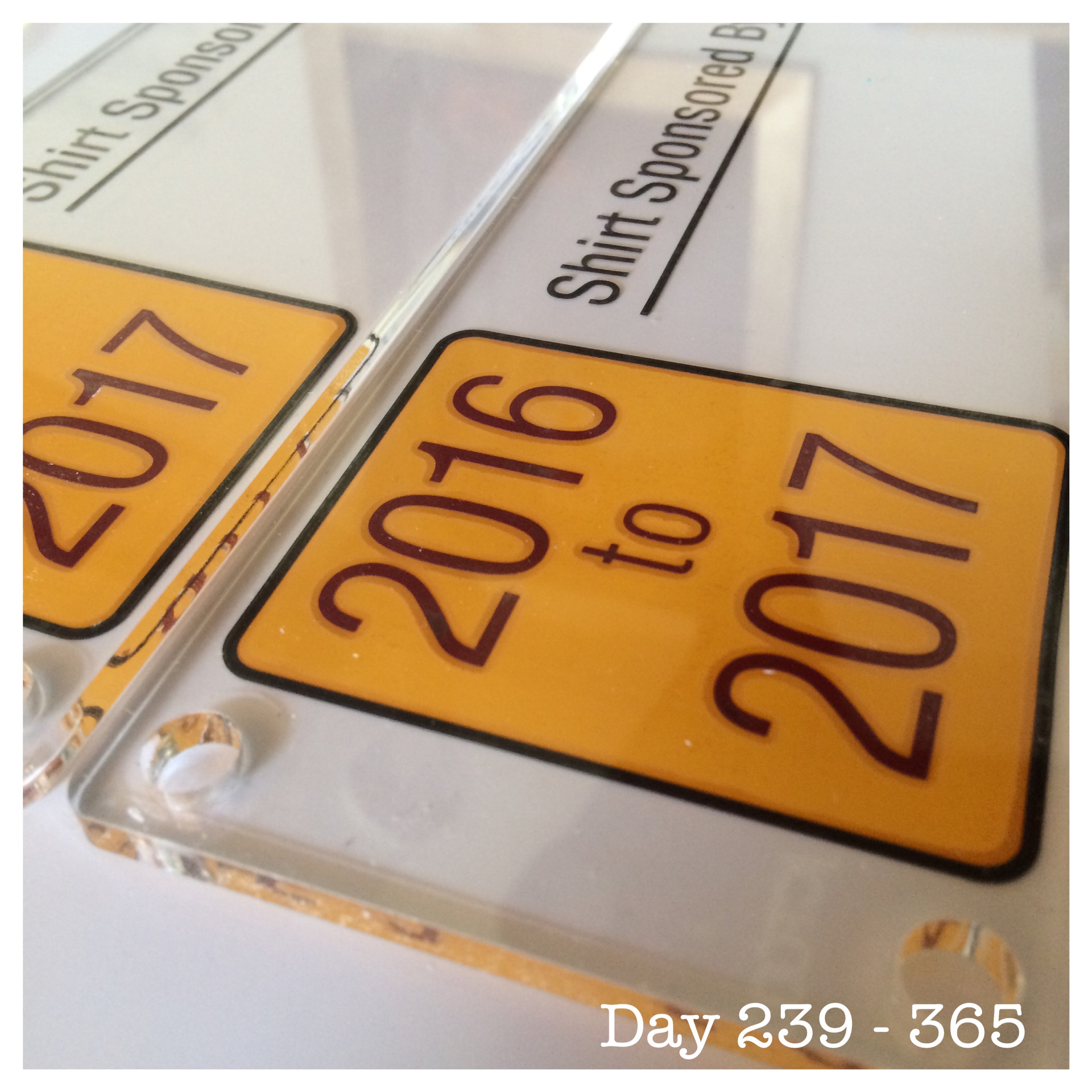 Last year I designed, produced and installed a series of graphic panels and “sponsor” plaques for a display of Bradford City shirts at Valley Parade. The shirts are all framed and there is one, where possible, for each season going back to the mid 1960s.