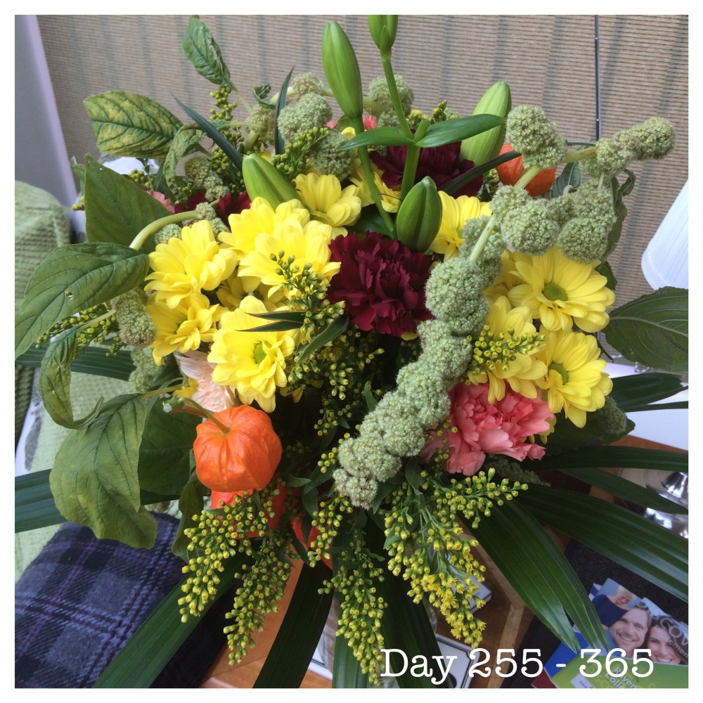 My fabulous wife, despite sunning herself in the Med on our wedding anniversary, sent me this lovely bouquet. I like to have flowers in the house and these are fab.