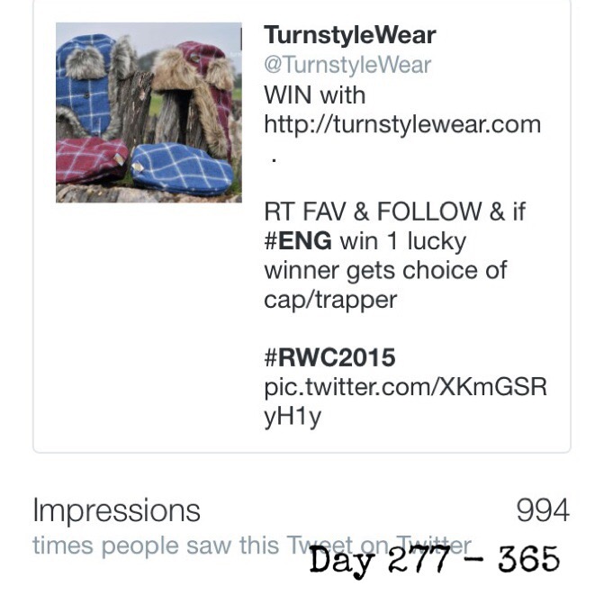 Turnstylewear ran a Twitter competition during the England versus Australia match in the Rugby World Cup. England needed to win to progress. They didn’t.