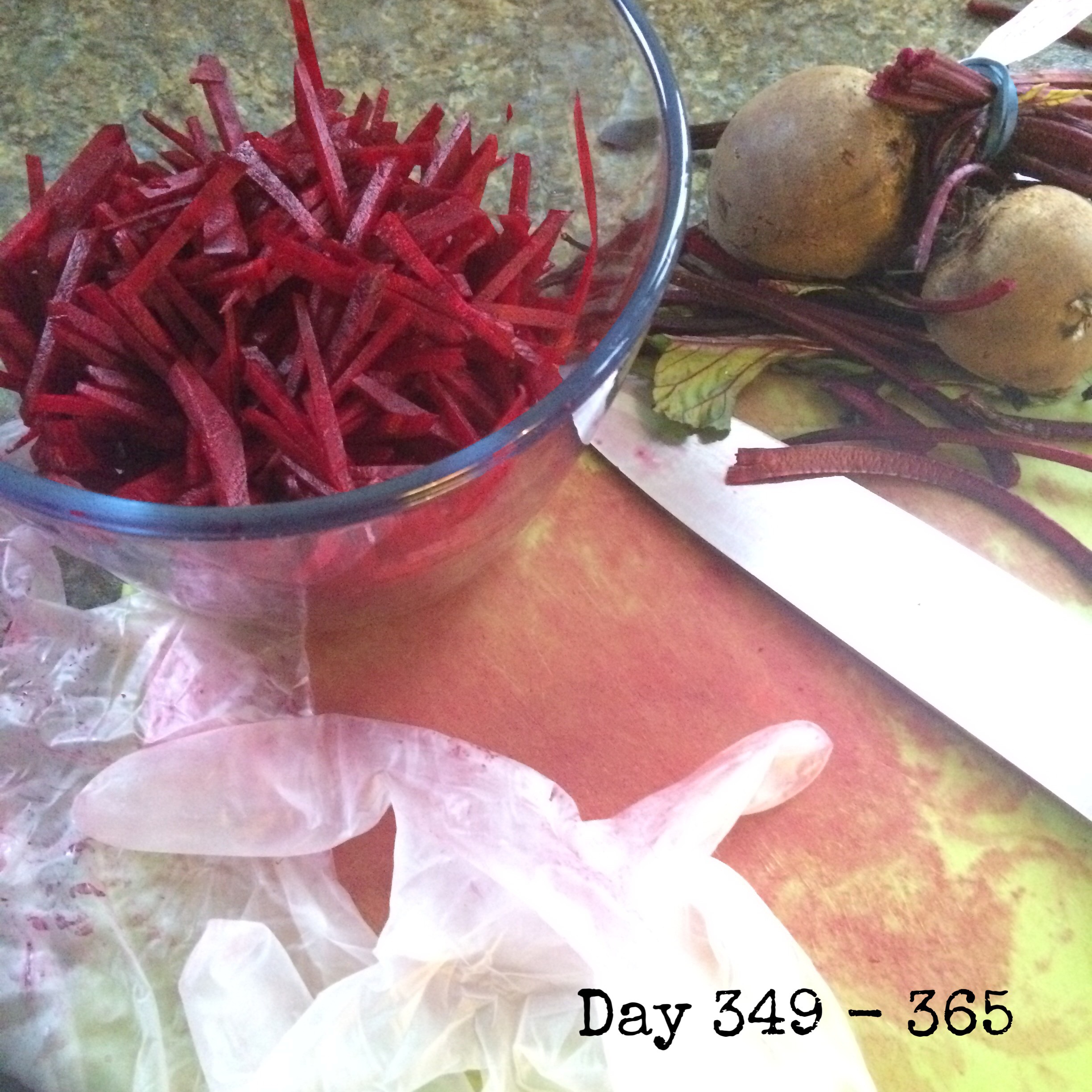 I have, in fact, been making her Quick Pickled Beetroot and Quick Pickled Carrot from her new book, “Simply Nigella” and following her TV programmes last night in which they were featured. The chopping board bears witness to the beetroot chopping that took place.
