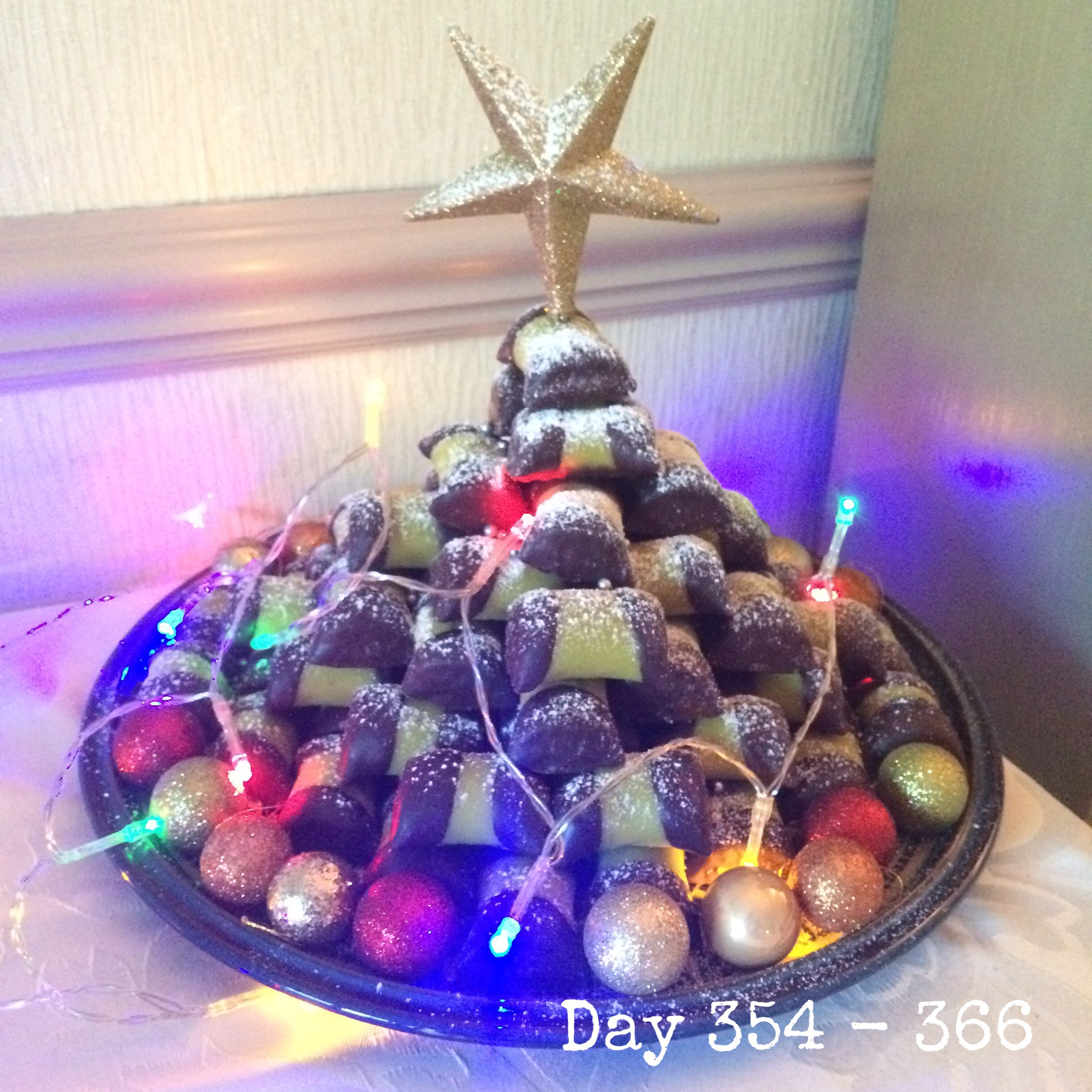 Here you see the “tree”that I made from 67 almond and chocolate treats from IKEA.