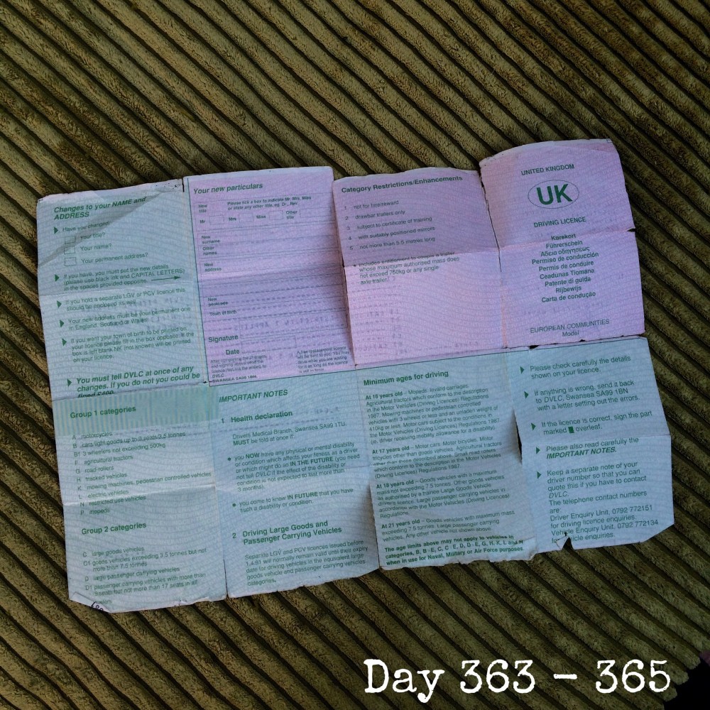 Today’s picture is of the rear of my driving licence – I’m not showing the front as the info could be used to impersonate me. And, do you really want two of me out there? Roaming the towns and lurking in the hedgerows? No, you don’t.