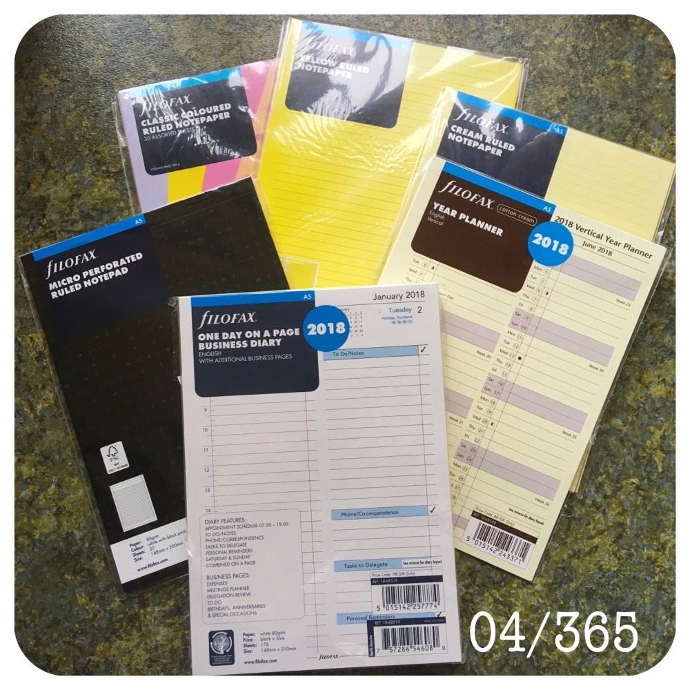 With this in mind, last week I ordered a new diary insert and stocks of paper for my trusty, some may say “old fashioned”, Filofax. Today they arrived and I spent part of today in updating my planner and notes. Here they are before I defaced them with my terrible handwriting.