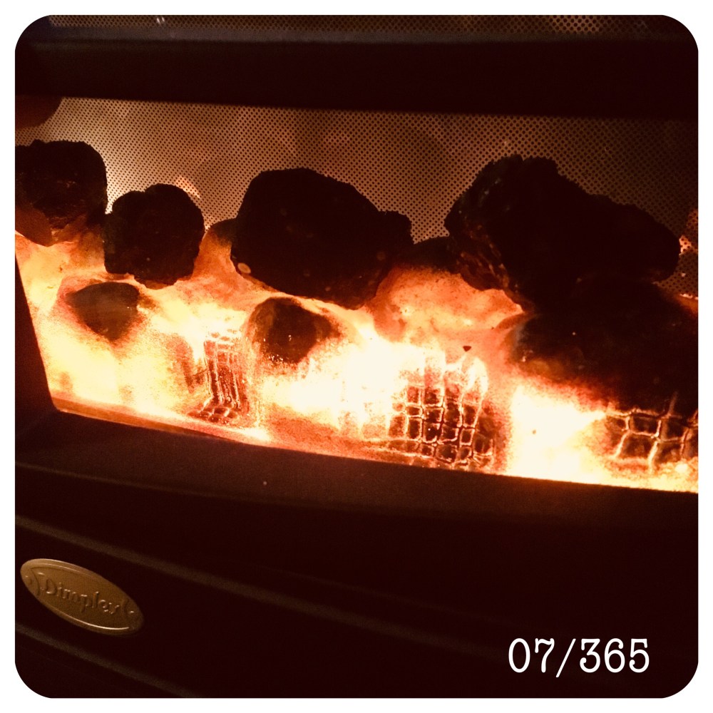 This is the little electric fire blazing away and keeping me warm while Sarah was tucked safely in bed recuperating.