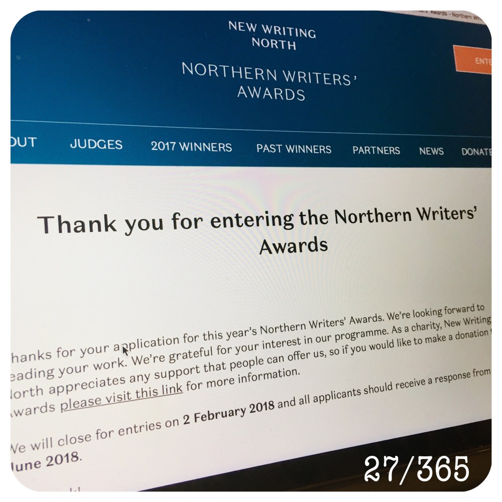 This is the screen on my Mac moments after I submitted my entry for the Northern Writers’ Awards for 2018.