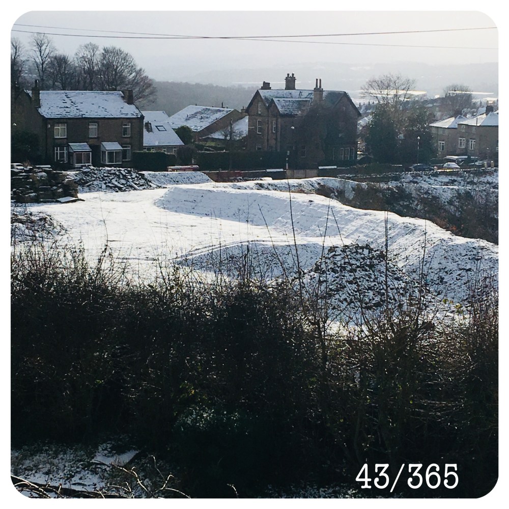 A quick snap of the (very) light covering of snow which we awoke to and as seen from our bedroom window this morning.