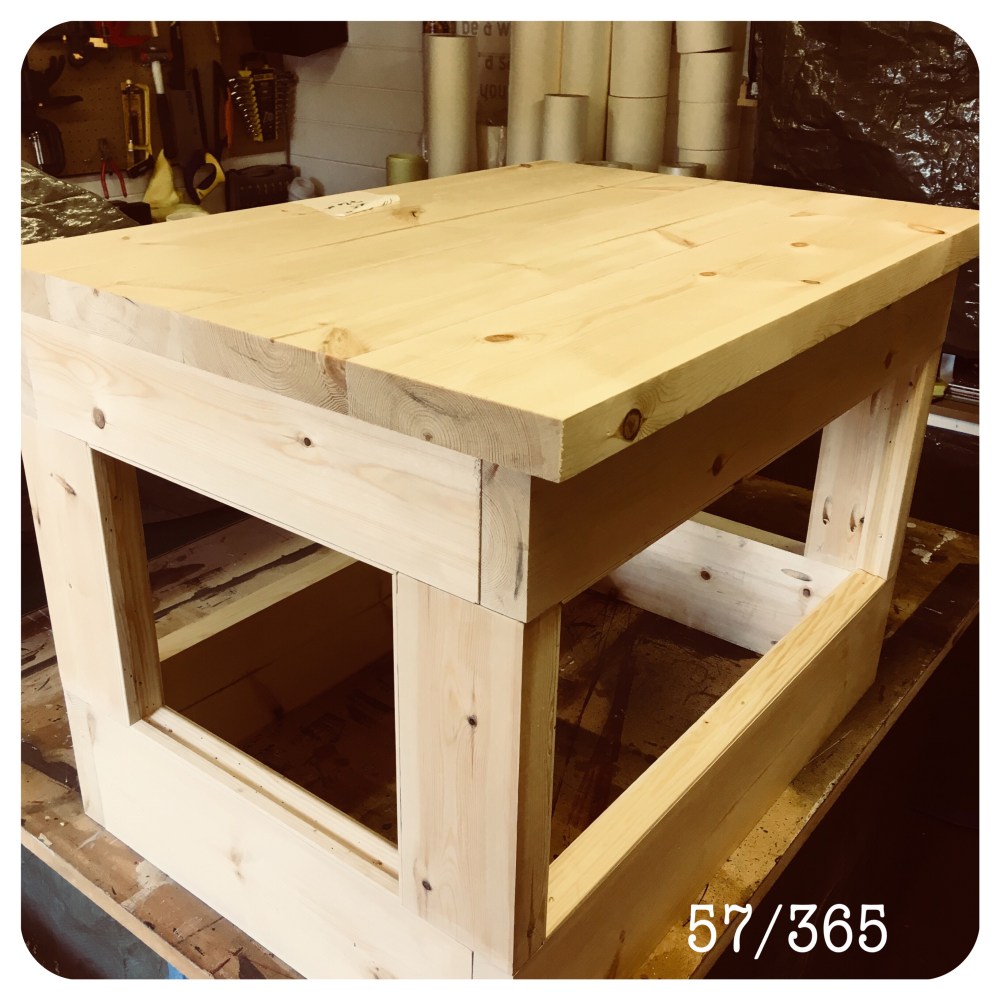 This is the base and seat top. The top will be oiled in Medium Georgian Oak Danish Oil as will the (yet to be sourced and sized) palettes for the main parts of the sides.