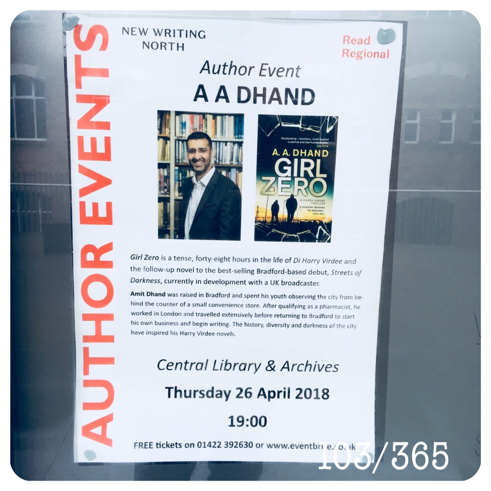 Dhand is a local writer from Bradford who has, to date, written two novels about a Bradford detective named Harry Virdee. I have read the first, “Streets of Darkness” and book two, “Girl Zero”, is next on my list to read.